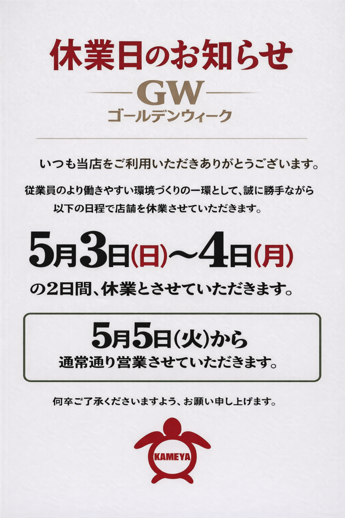 ゴールデンウィーク期間中の営業のご案内